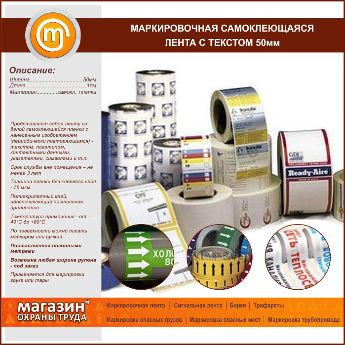 Маркировочная самоклеящаяся лента с текстом 50 мм в Обнинске купить