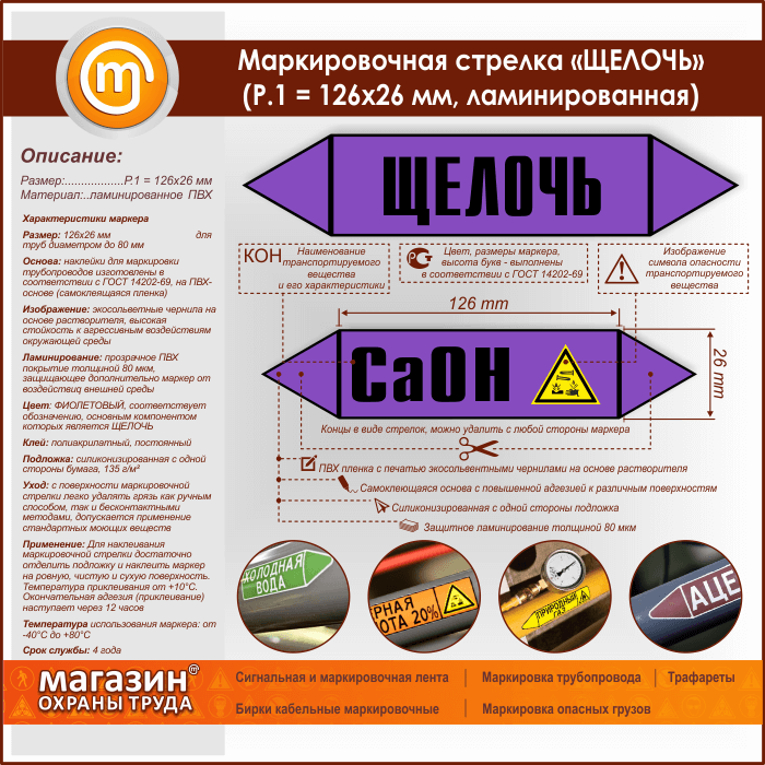 Маркировочная стрелка «ЩЕЛОЧЬ» (Р.1 = 126х26 мм, самоклеящаяся плёнка с ламинированием) в Обнинске купить