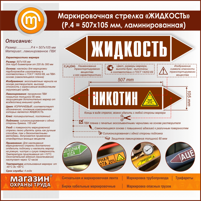 Маркировочная стрелка «ЖИДКОСТЬ»(P.4 = 507х105 мм, самоклеящаяся плёнка с ламинированием) в Обнинске купить
