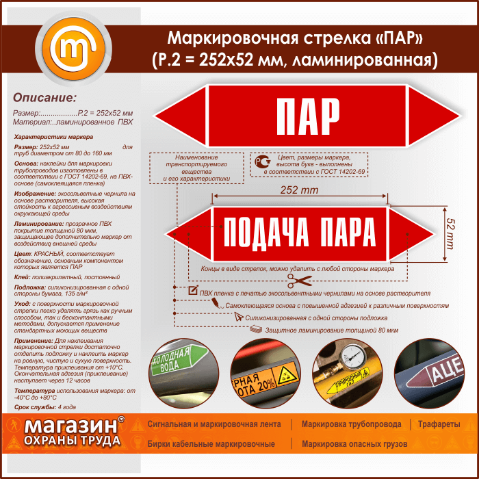Маркировочная стрелка «ПАР» (P.2 = 252х52 мм, самоклеящаяся плёнка с ламинированием) в Обнинске купить