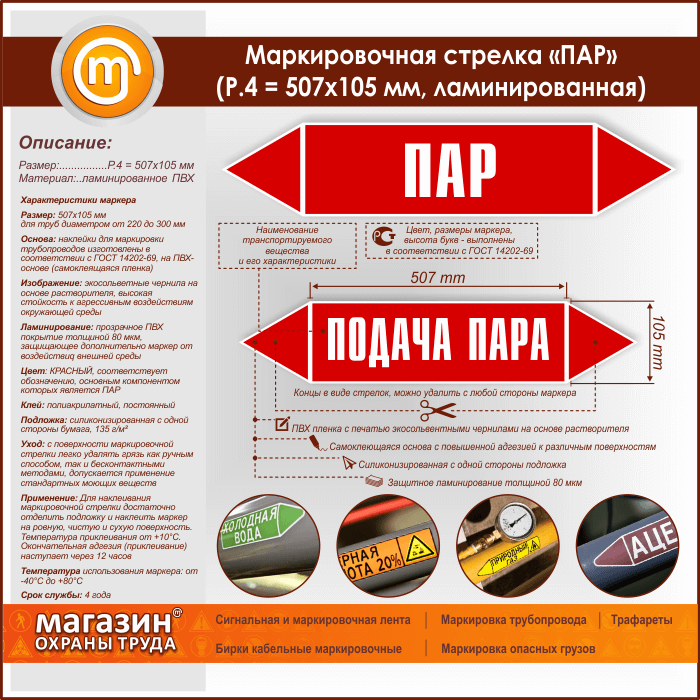 Маркировочная стрелка «ПАР» (P.4 = 507х105 мм, самоклеящаяся плёнка с ламинированием) в Обнинске купить