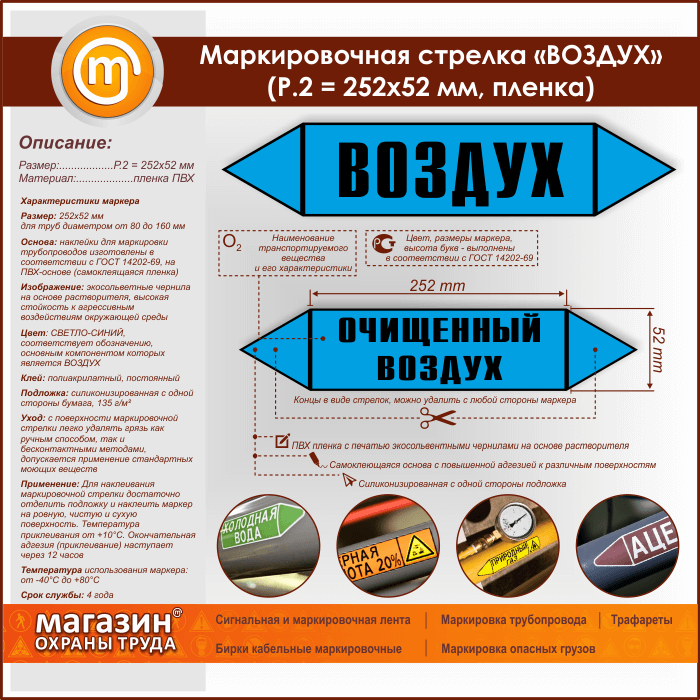 Маркировочная стрелка «ВОЗДУХ» (P.2 = 252х52 мм, самоклеящаяся плёнка) в Обнинске купить