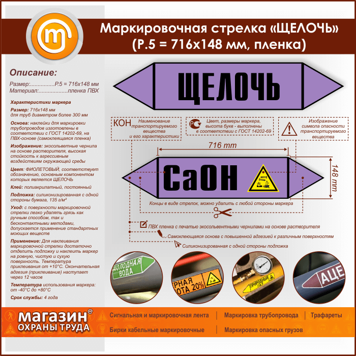 Маркировочная стрелка «ЩЕЛОЧЬ» (P.5 = 716х148 мм, самоклеящаяся плёнка) в Обнинске купить