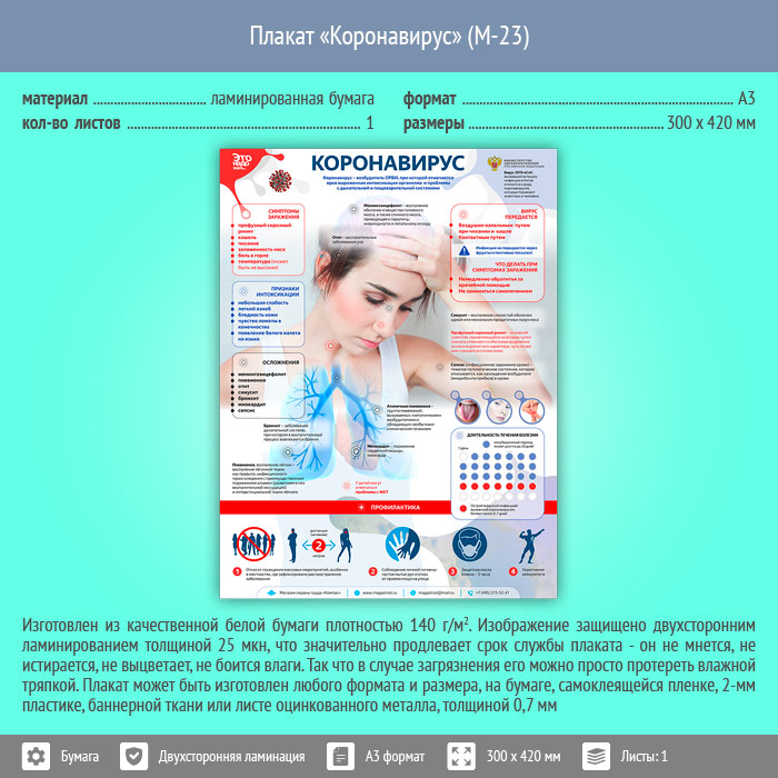 Плакат «Коронавирус» (М-23, ламинированная бумага, А3, 1 лист) в Обнинске купить