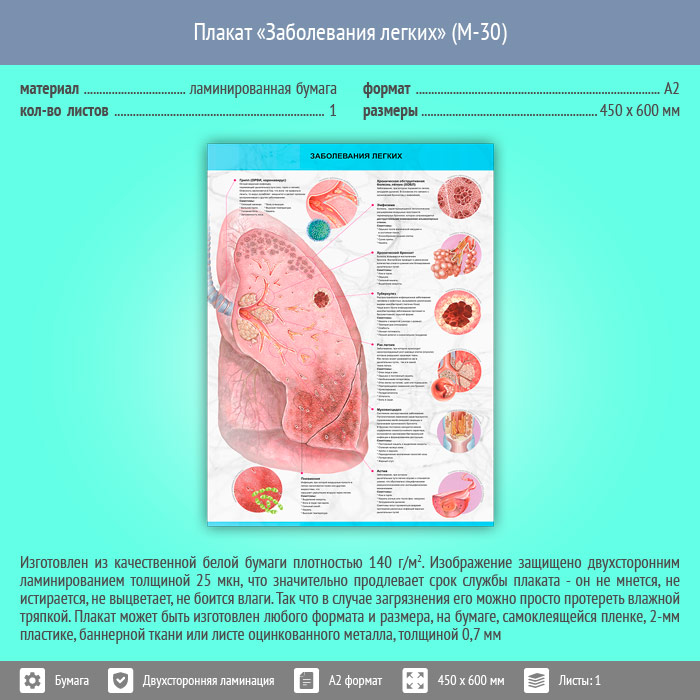 Плакат «Заболевания легких» (М-30, ламинированная бумага, А2, 1 лист) в Обнинске купить