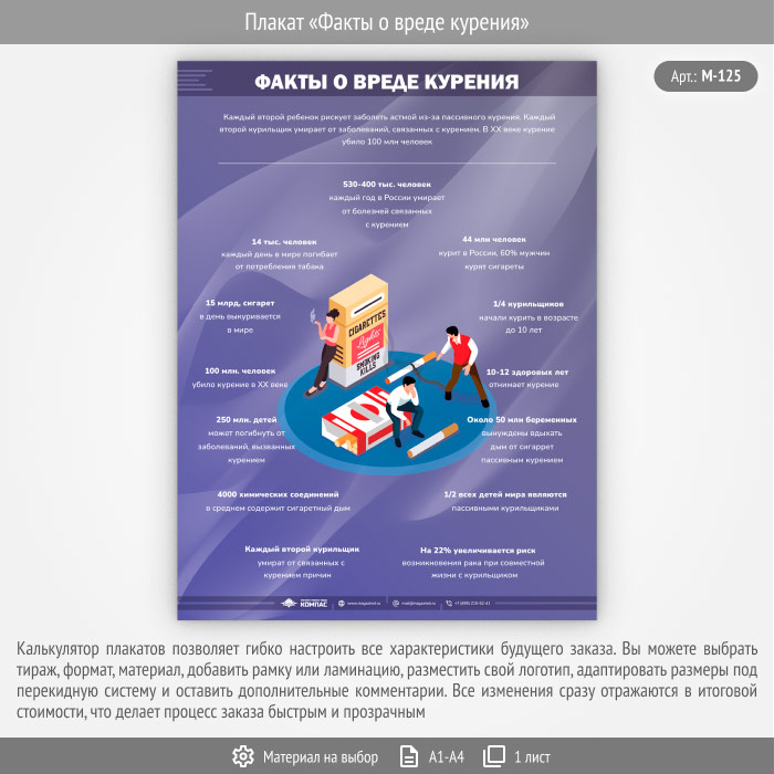 Плакат «Факты о вреде курения» (М-125, 1 лист) в Обнинске купить