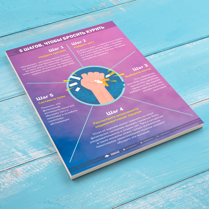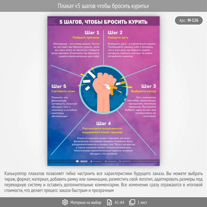 Плакат «5 шагов чтобы бросить курить» (М-126, 1 лист) в Обнинске купить