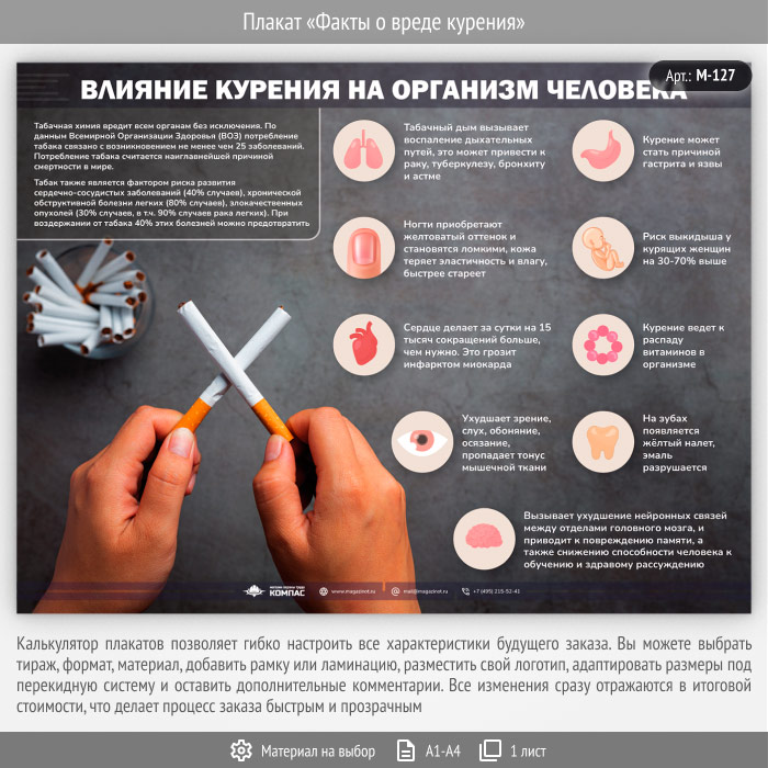 Плакат «Факты о вреде курения» (М-127, 1 лист) в Обнинске купить
