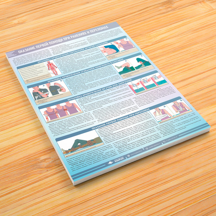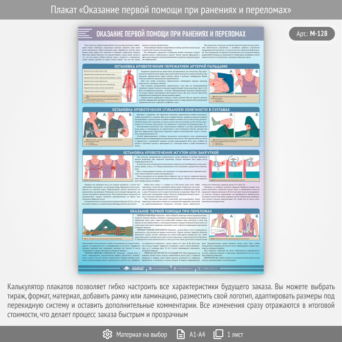 Плакат «Оказание первой помощи при ранениях и переломах» (М-128, 1 лист) в Обнинске купить
