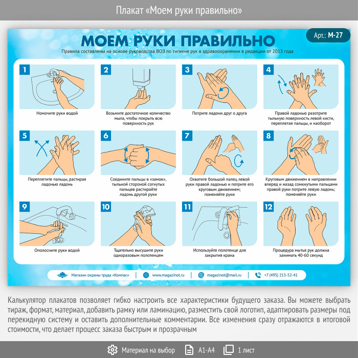 Плакат «Моем руки правильно» (М-27, 1 лист) в Обнинске купить
