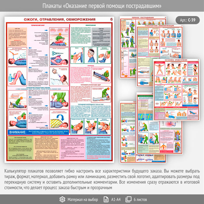 Плакат «Оказание первой помощи пострадавшим» (С-39, 6 листов) в Обнинске купить