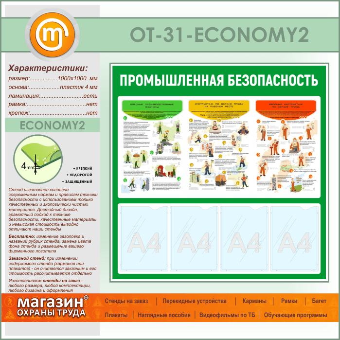 Стенд «Промышленная безопасность» с 4 карманами (OT-31-ECONOMY2) в Обнинске купить
