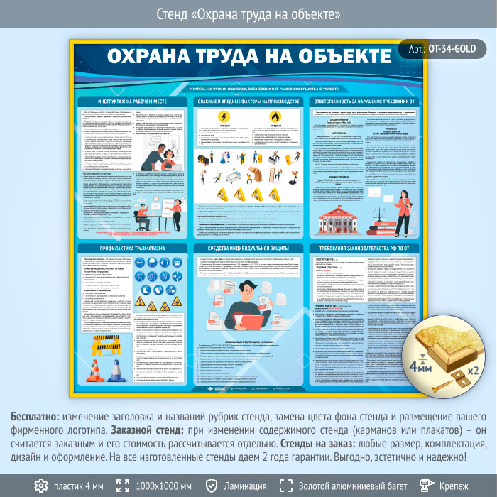 Стенд «Охрана труда на объекте» (OT-34-GOLD) в Обнинске купить