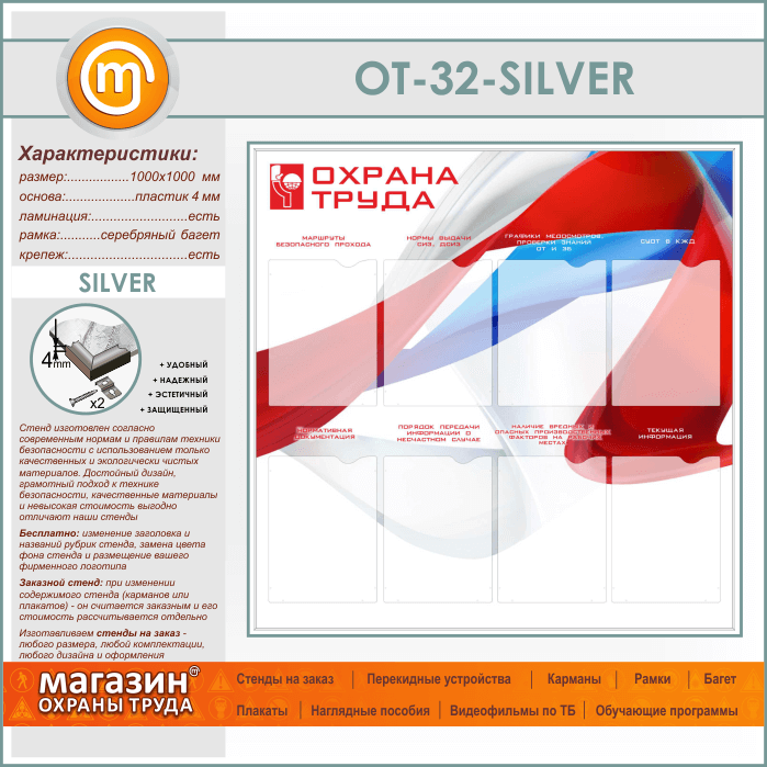 Стенд «Охрана труда» с 8 карманами (OT-32-SILVER) в Обнинске купить