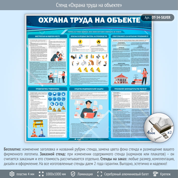 Стенд «Охрана труда на объекте» (OT-34-SILVER) в Обнинске купить