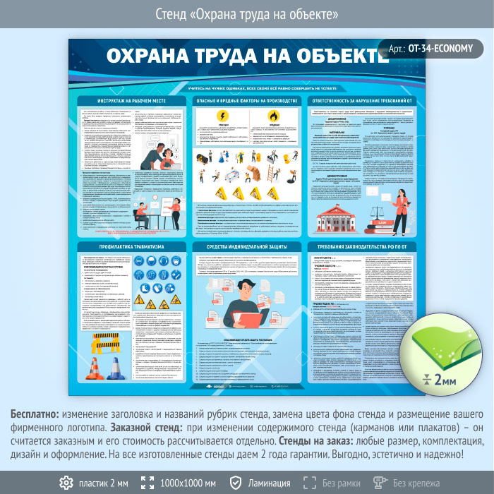 Стенд «Охрана труда на объекте» (OT-34-ECONOMY) в Обнинске купить