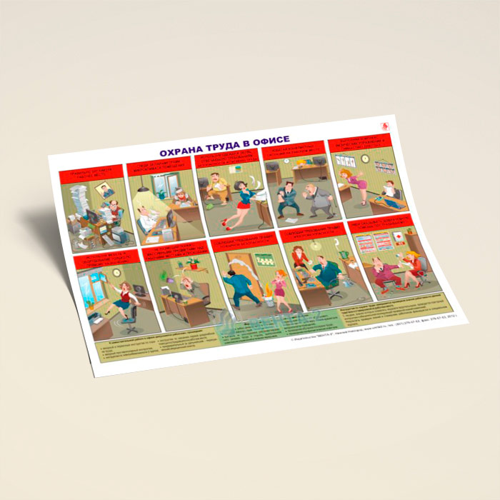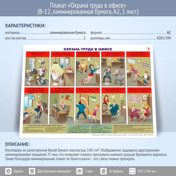 Плакат «Охрана труда в офисе» (В-12, ламинированная бумага, А2, 1 лист) в Обнинске купить