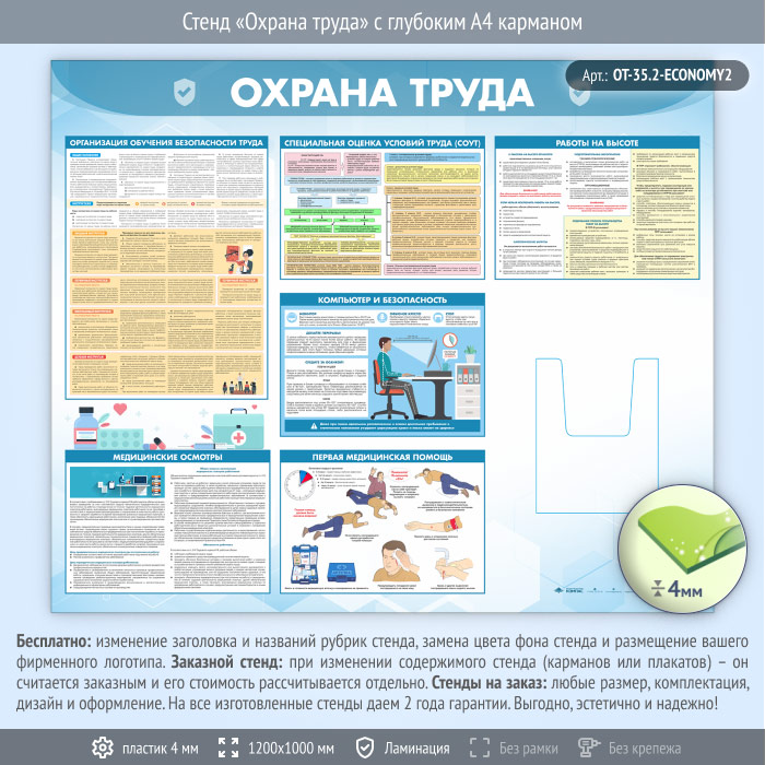 Стенд «Охрана труда» с глубоким А4 карманом (OT-35.2-ECONOMY2) в Обнинске купить