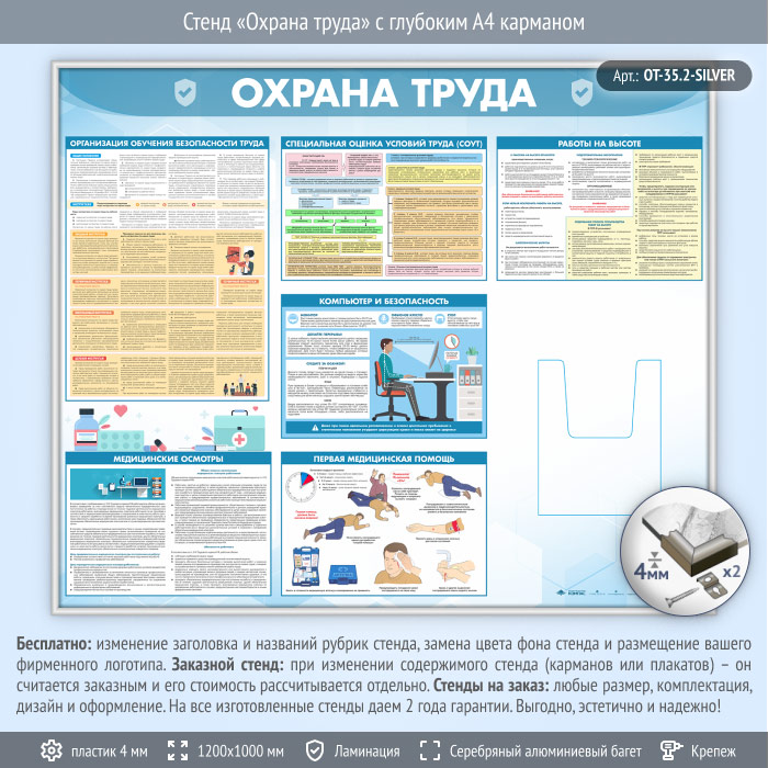 Стенд «Охрана труда» с глубоким А4 карманом (OT-35.2-SILVER) в Обнинске купить