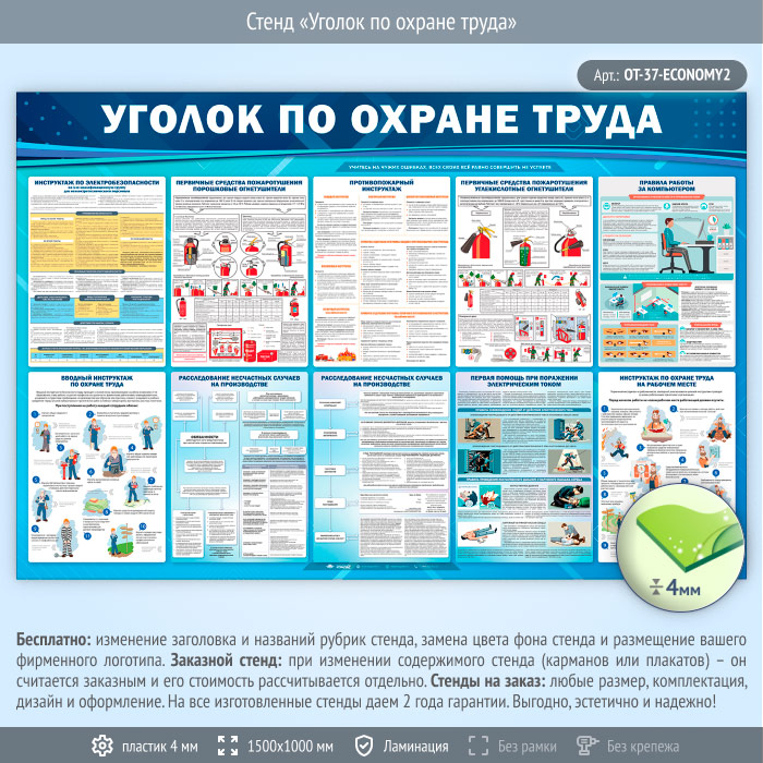 Стенд «Уголок по охране труда» (OT-37-ECONOMY2) в Обнинске купить