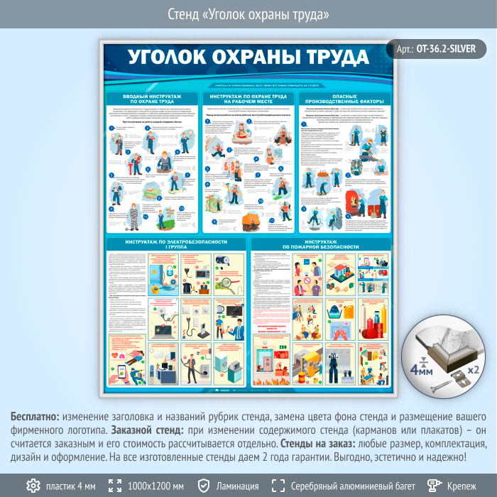 Стенд «Уголок охраны труда» (OT-36.2-SILVER) в Обнинске купить