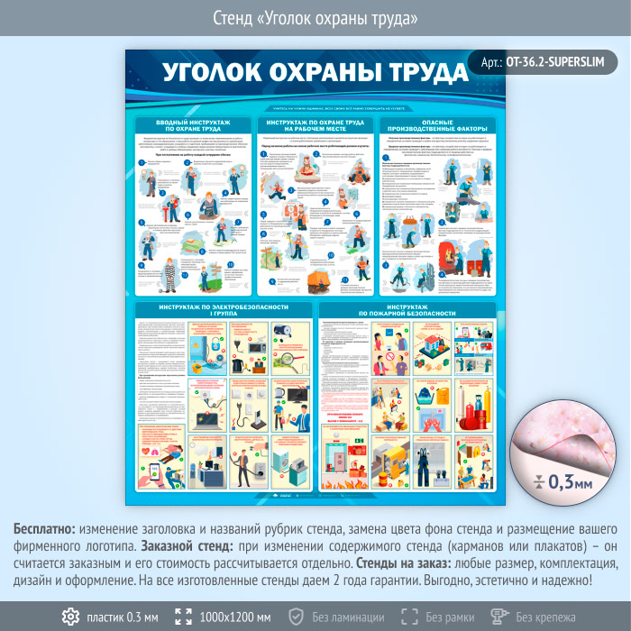 Стенд «Уголок охраны труда» (OT-36.2-SUPERSLIM) в Обнинске купить