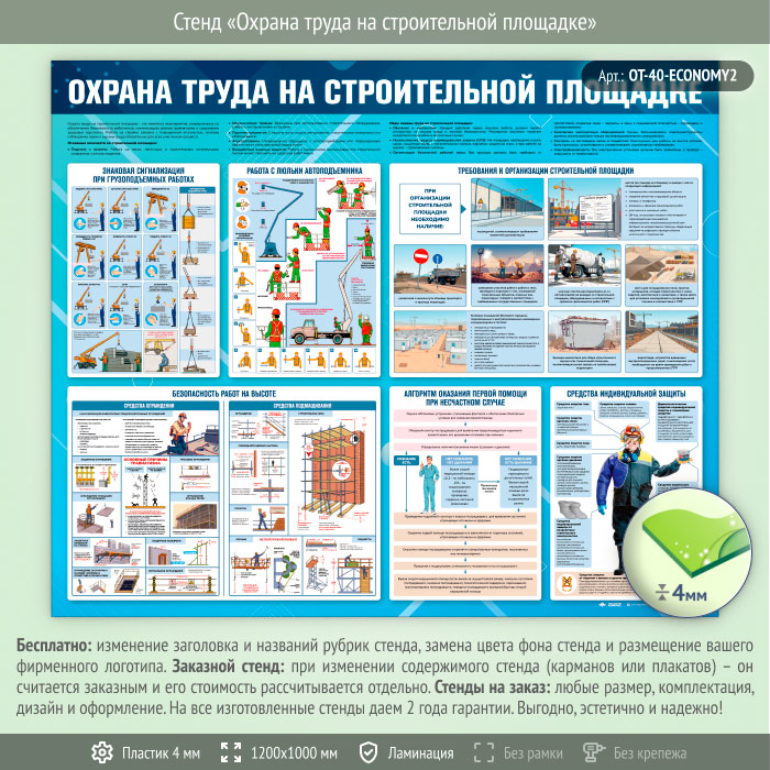 Стенд «Охрана труда на строительной площадке» (OT-40-ECONOMY2) в Обнинске купить
