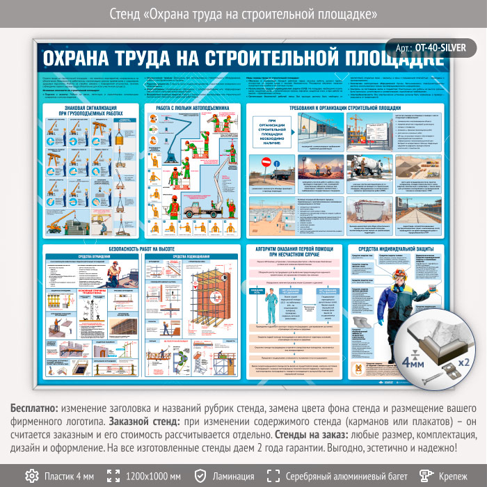 Стенд «Охрана труда на строительной площадке» (OT-40-SILVER) в Обнинске купить