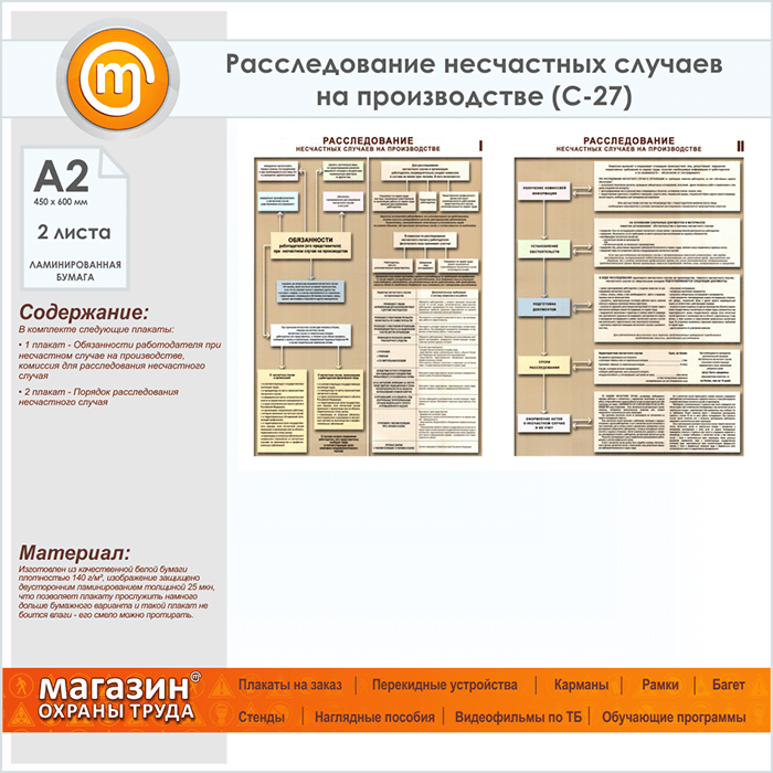 Плакаты «Расследование несчастных случаев на производстве» (С-27, ламинированная бумага, А2, 2 листа) в Обнинске купить