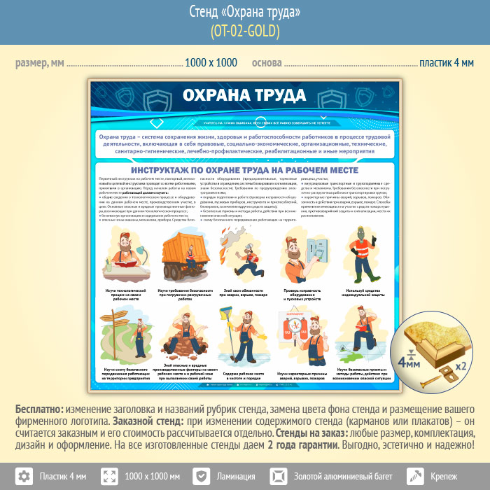 Стенд «Охрана труда» (OT-02-GOLD) в Обнинске купить