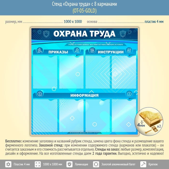 Стенд «Охрана труда» с 8 карманами (OT-05-GOLD) в Обнинске купить