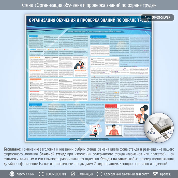 Стенд «Организация обучения и проверка знаний по охране труда» (OT-08-SILVER) в Обнинске купить
