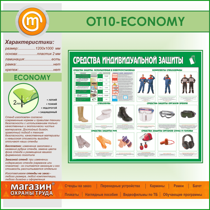 Стенд «Средства индивидуальной защиты» (OT-10-ECONOMY) в Обнинске купить