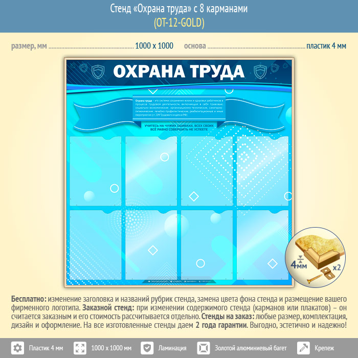 Стенд «Охрана труда» с 8 карманами (OT-12-GOLD) в Обнинске купить