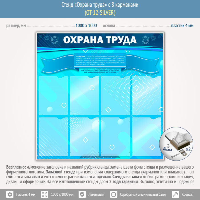 Стенд «Охрана труда» с 8 карманами (OT-12-SILVER) в Обнинске купить