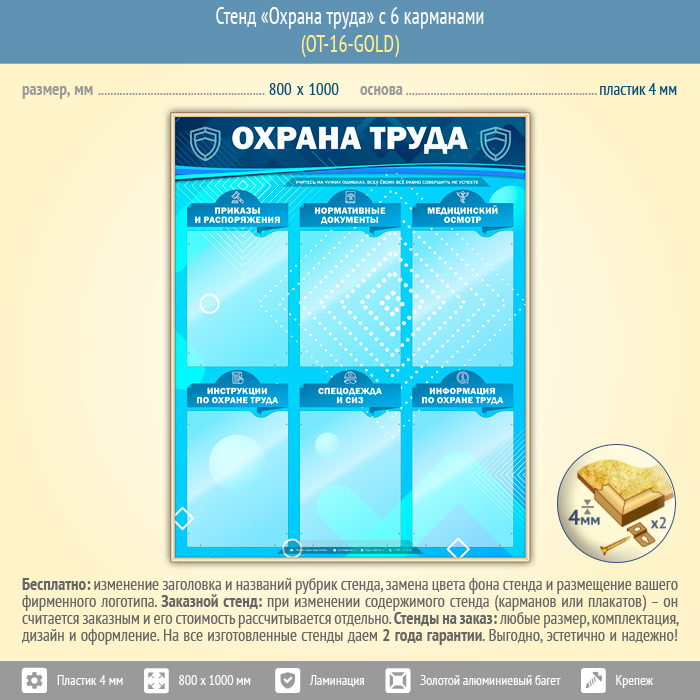 Стенд «Охрана труда» с 6 карманами (OT-16-GOLD) в Обнинске купить
