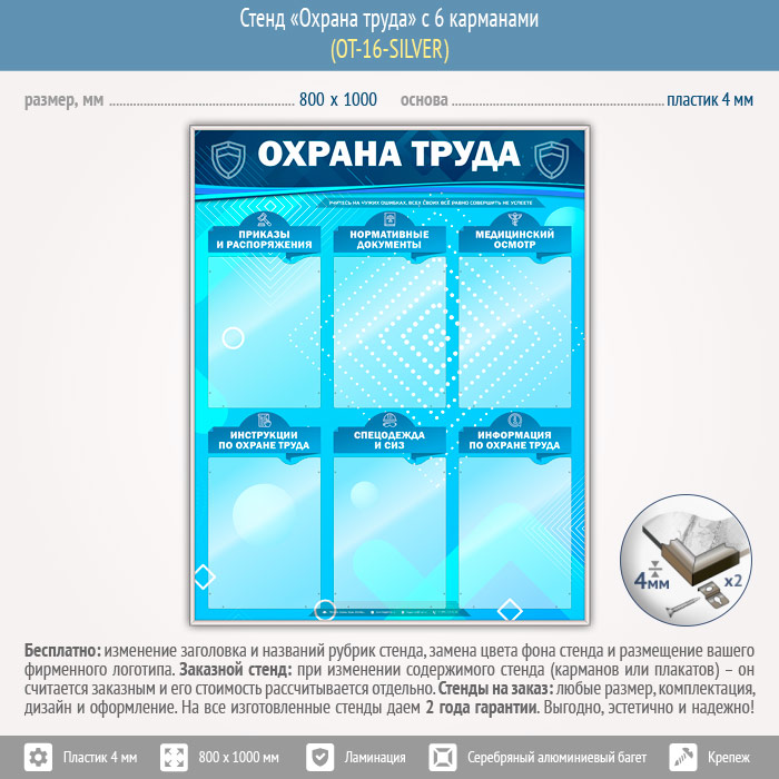 Стенд «Охрана труда» с 6 карманами (OT-16-SILVER) в Обнинске купить