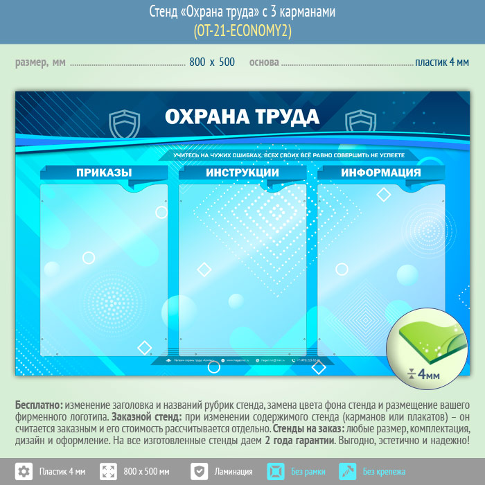 Стенд «Охрана труда» с 3 карманами (OT-21-ECONOMY2) в Обнинске купить