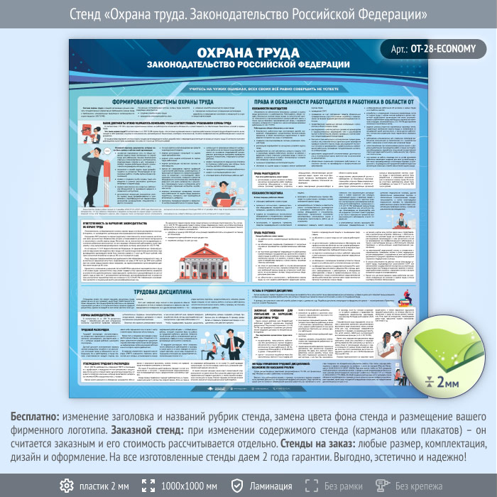 Стенд «Охрана труда. Законодательство Российской Федерации» (OT-28-ECONOMY) в Обнинске купить
