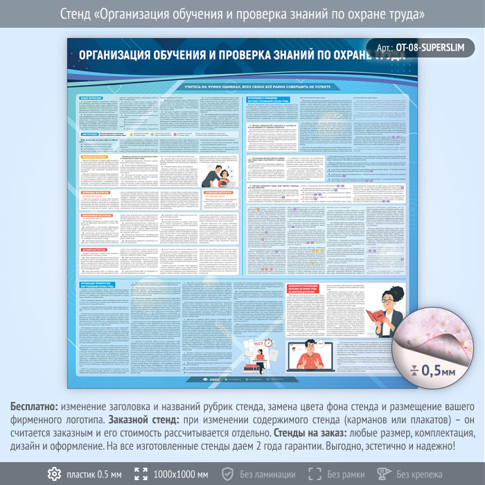 Стенд «Организация обучения и проверка знаний по охране труда» (OT-08-SUPERSLIM) в Обнинске купить