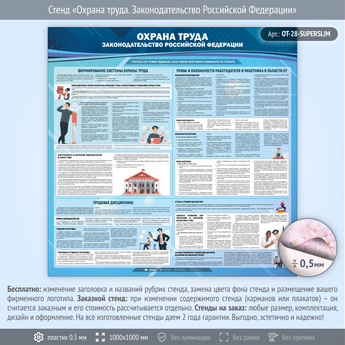 Стенд «Охрана труда. Законодательство Российской Федерации» (OT-28-SUPERSLIM) в Обнинске купить