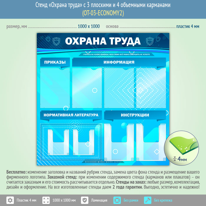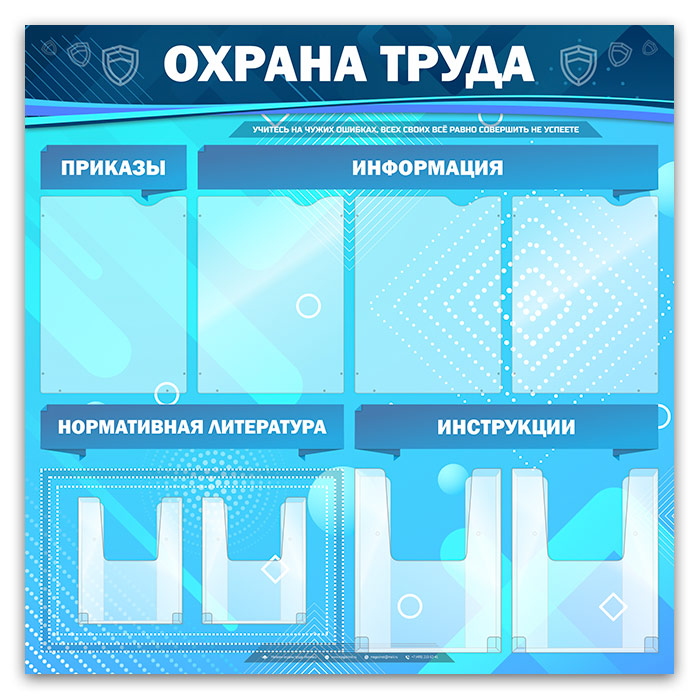Стенд «Охрана труда» с 4 плоскими и 4 объемными карманами (OT-03-ECONOMY2) в Обнинске купить