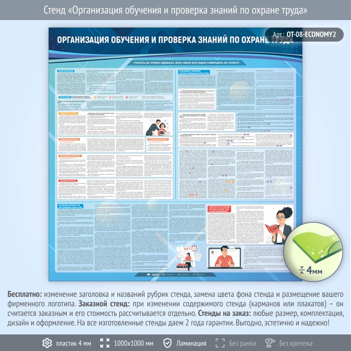 Стенд «Организация обучения и проверка знаний по охране труда» (OT-08-ECONOMY2) в Обнинске купить
