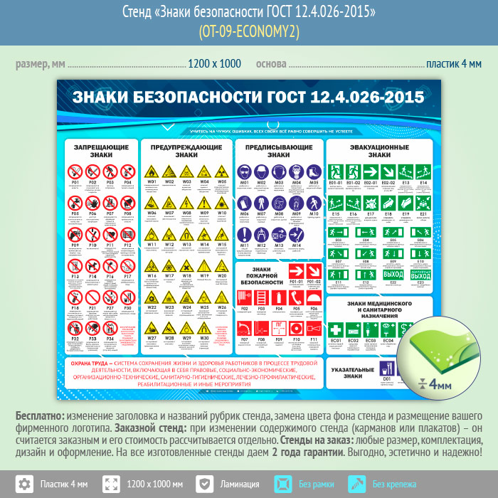 Стенд «Знаки безопасности ГОСТ 12.4.026-2015» (OT-09-ECONOMY2) в Обнинске купить