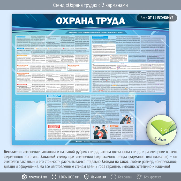 Стенд «Охрана труда» с 2 карманами (OT-11-ECONOMY2) в Обнинске купить