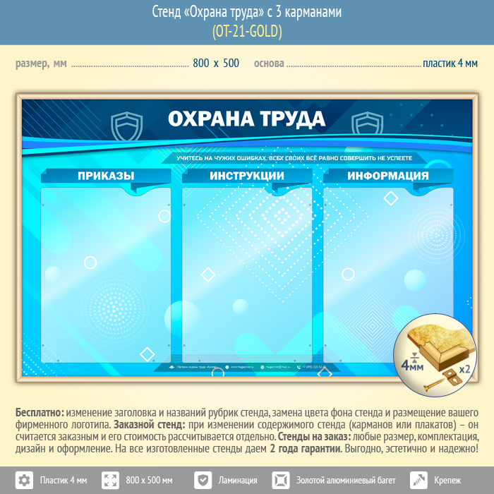 Стенд «Охрана труда» с 3 карманами (OT-21-GOLD) в Обнинске купить