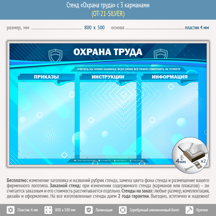 Стенд «Охрана труда» с 3 карманами (OT-21-SILVER) в Обнинске купить