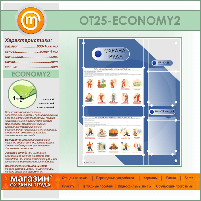 Стенд «Охрана труда» с 2 плоскими карманами (OT-25-ECONOMY2) в Обнинске купить