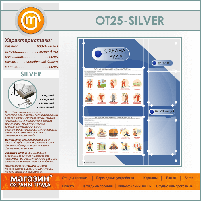 Стенд «Охрана труда» с 2 плоскими карманами (OT-25-SILVER) в Обнинске купить