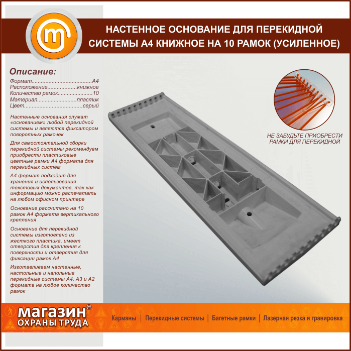 Настенное основание для перекидной системы А4 книжное на 10 рамок (усиленное) в Обнинске купить